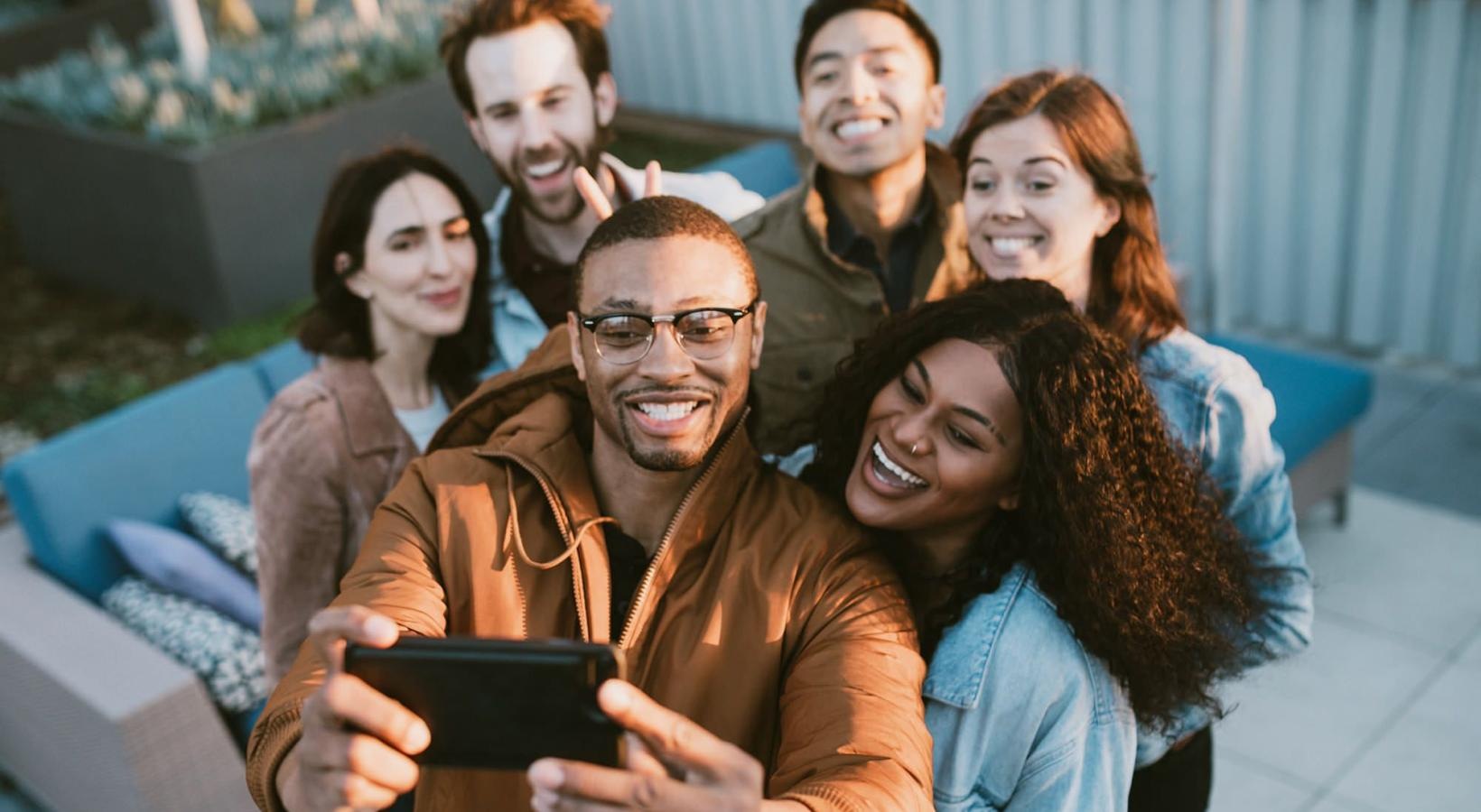 • friends take a group selfie outdoors